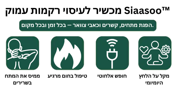 🔥 טיפול בחום מרגיע – חום אחיד ועדין הממיס את המתח והנוקשות.